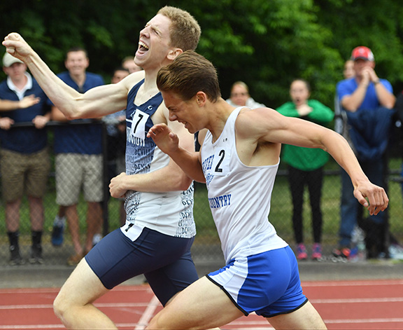 These two 800m runners were separated at the finish line by 0.06 sec. The finish is between the first two legs